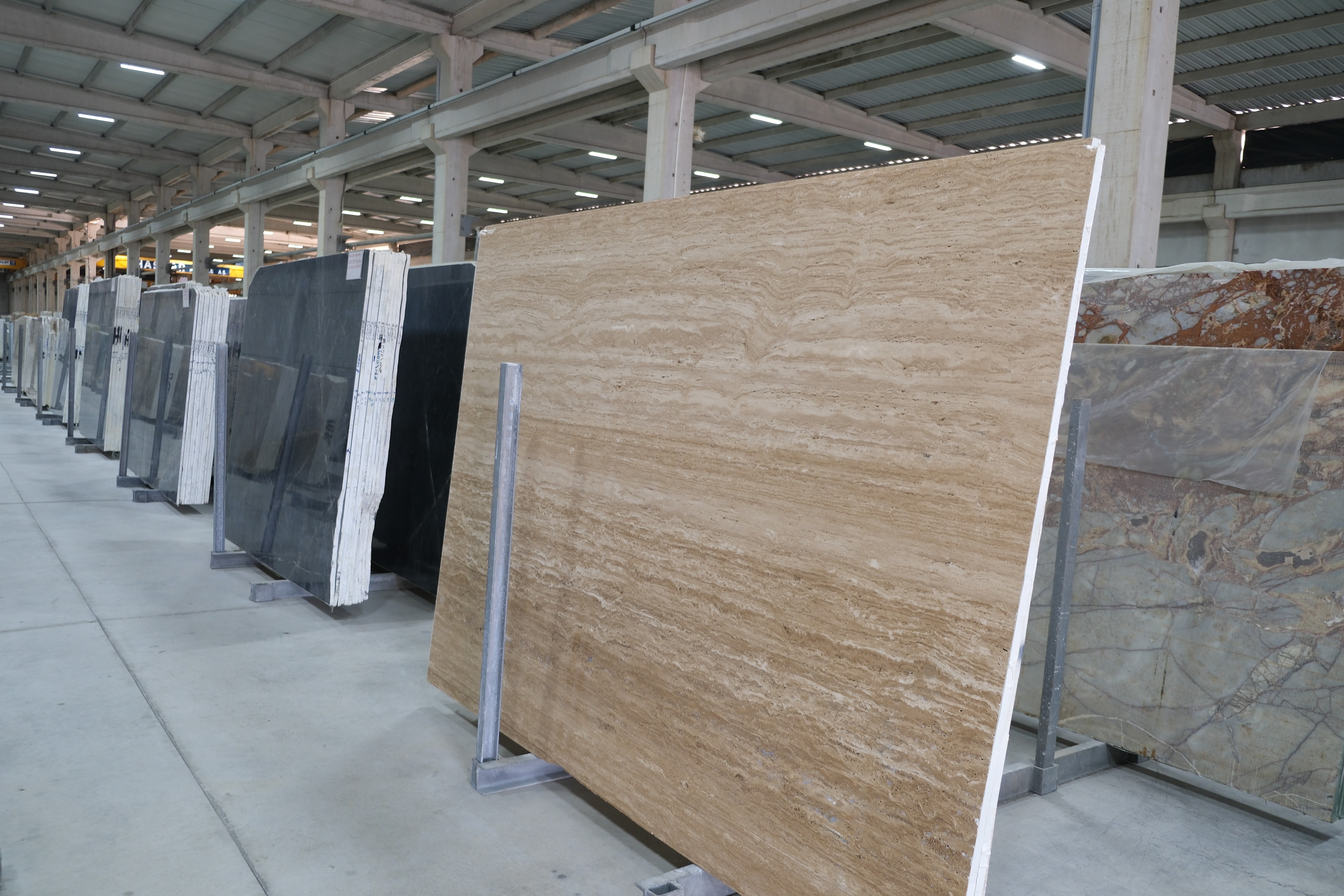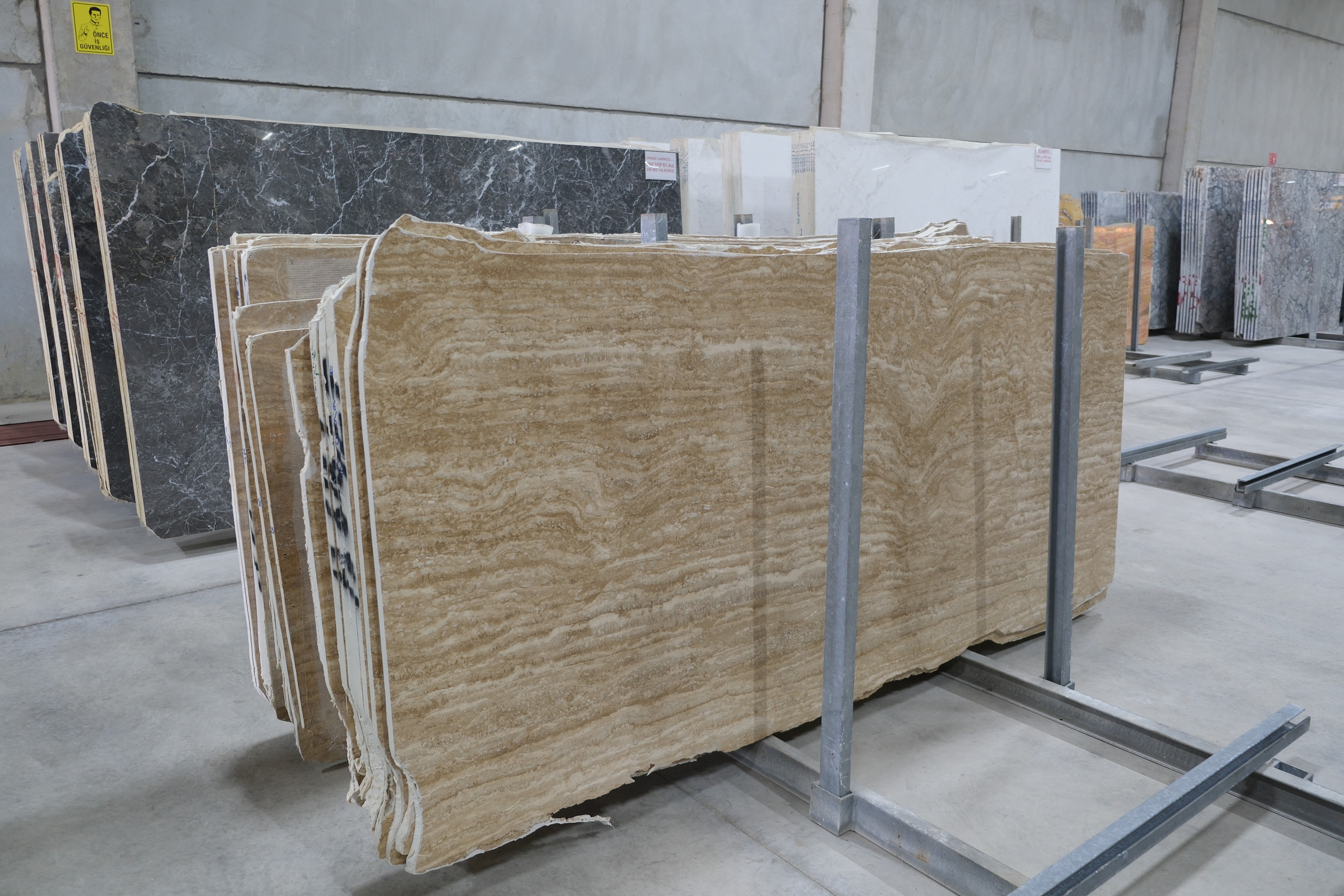 Visit our modern 1,200 m² indoor showroom in Torbalı, İzmir, to experience our premium travertines and boutique stones firsthand. Touch the textures, see the quality, and envision how they will bring your projects to life.