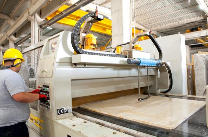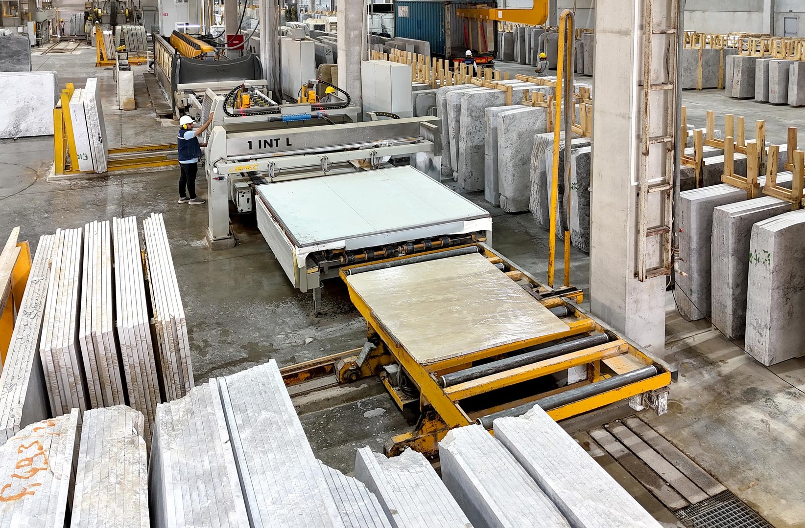 With an annual slab production of 500,000 m², we flawlessly execute all types of sizing and surface treatments (polished, honed, brushed).